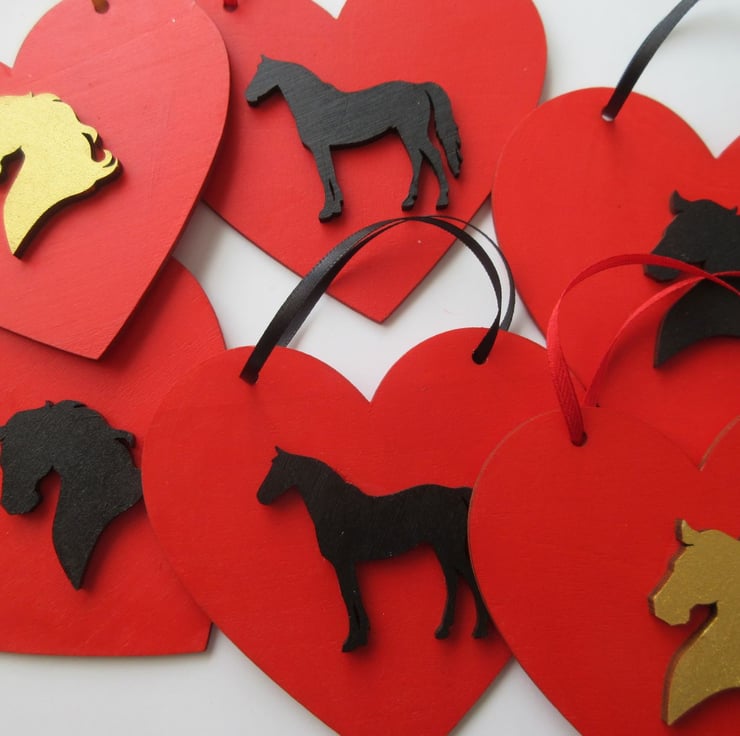 I enjoy making simple but pretty hanging decorations with various animal themes. These little wooden hearts can be used all year round, and also make lovely Christmas decorations for a pony lover.