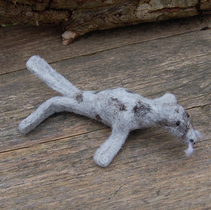 Needle felted using grey Sheep wool fibre, wool whiskers and bead eyes