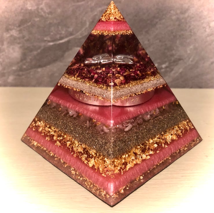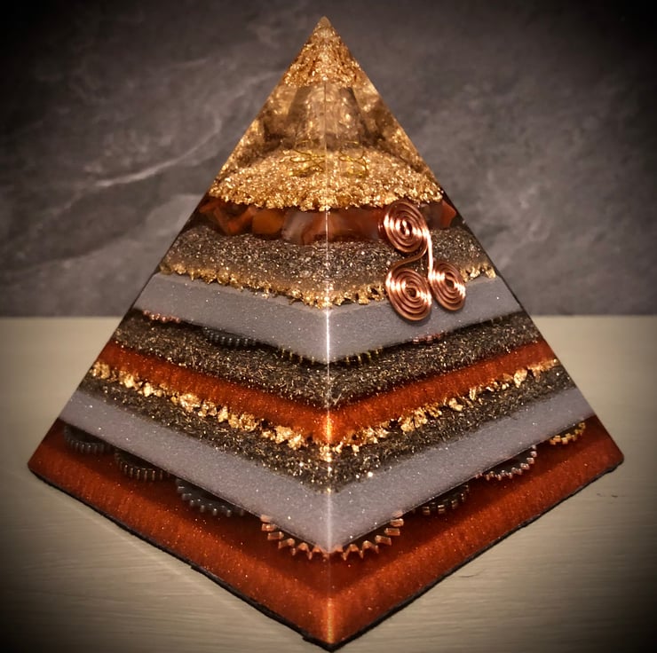 I have always felt drawn to the Great Pyramids of Egypt and was very fortunate to visit them myself. Along with my love of crystals, resin art and interest in orgone energy, this inspired me to create Crystal Energy and Orgonite Pyramids.