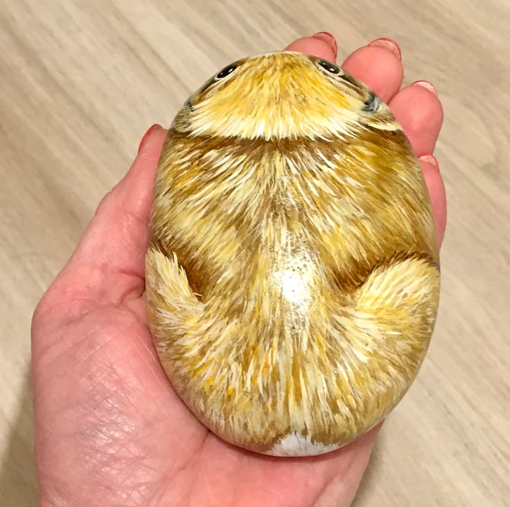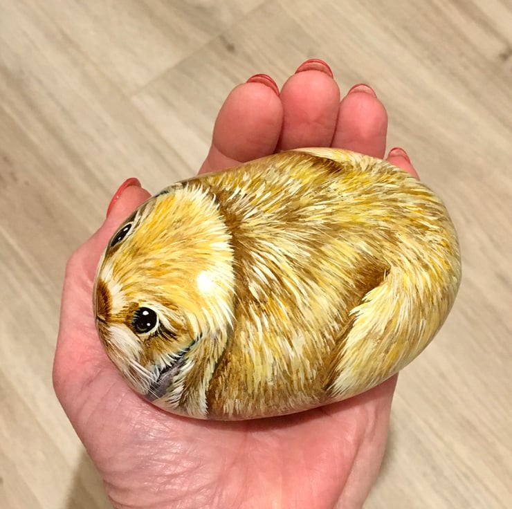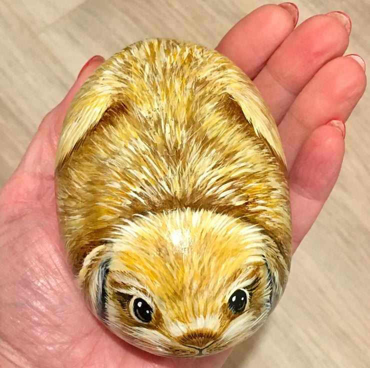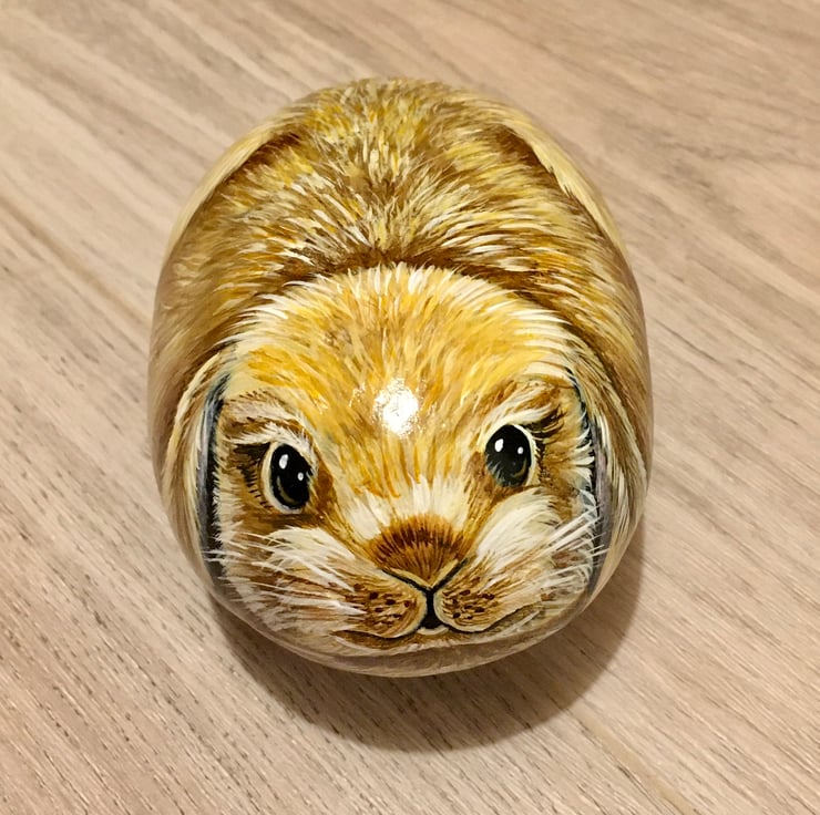 This rabbit has been painted onto a smooth stone and glazed for a glossy protective finish. It will be sent second class signed for within the UK