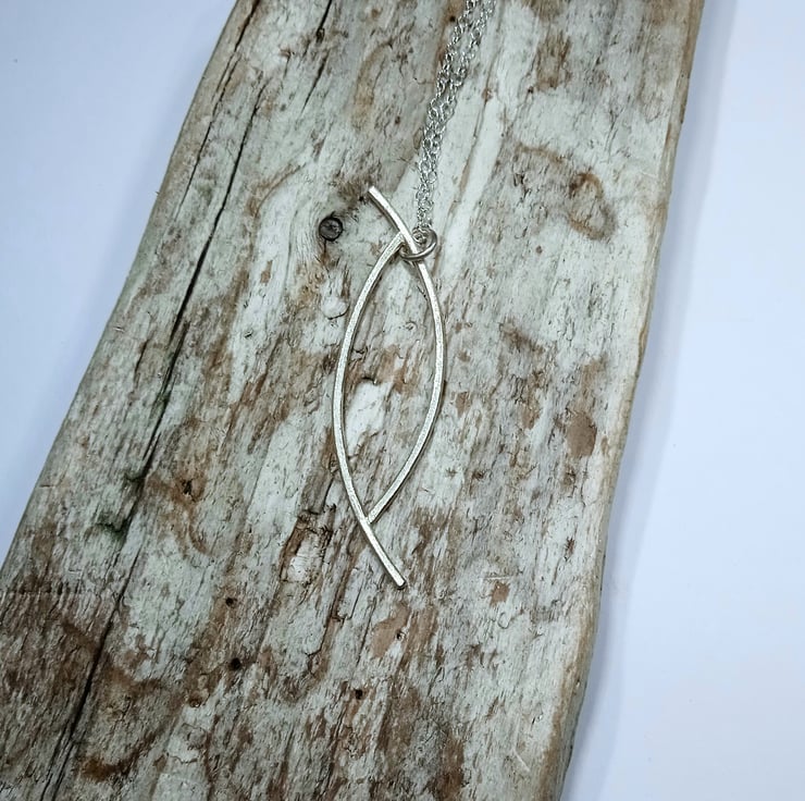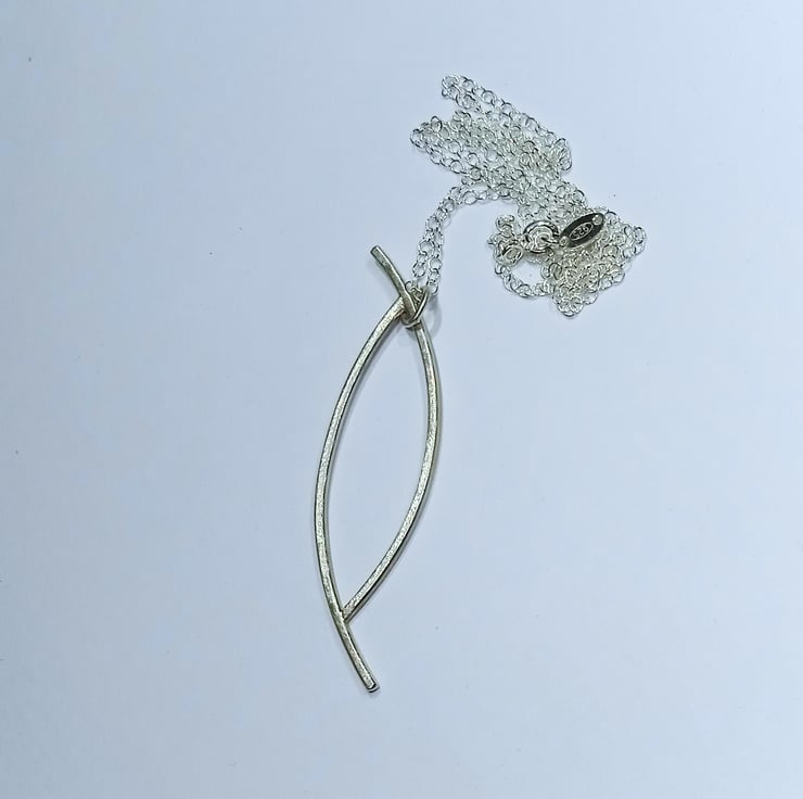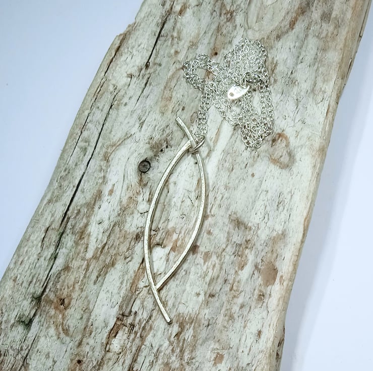 I have made this pendant from 1.5 mm sterling silver from which I have created and soldered together an interesting shape.