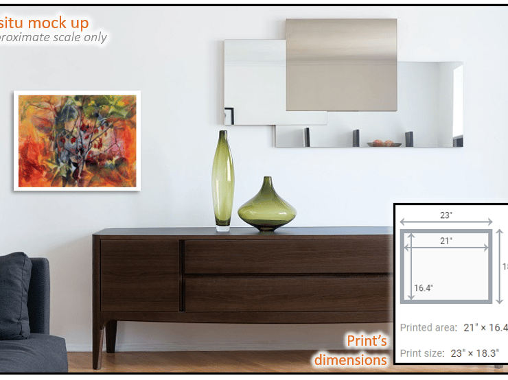 This particular print is 21" x 16.4" with an additional 1” white border on all sides, making the whole piece 23" x 18.4" in size. The print’s resolution will be 205 DPI.