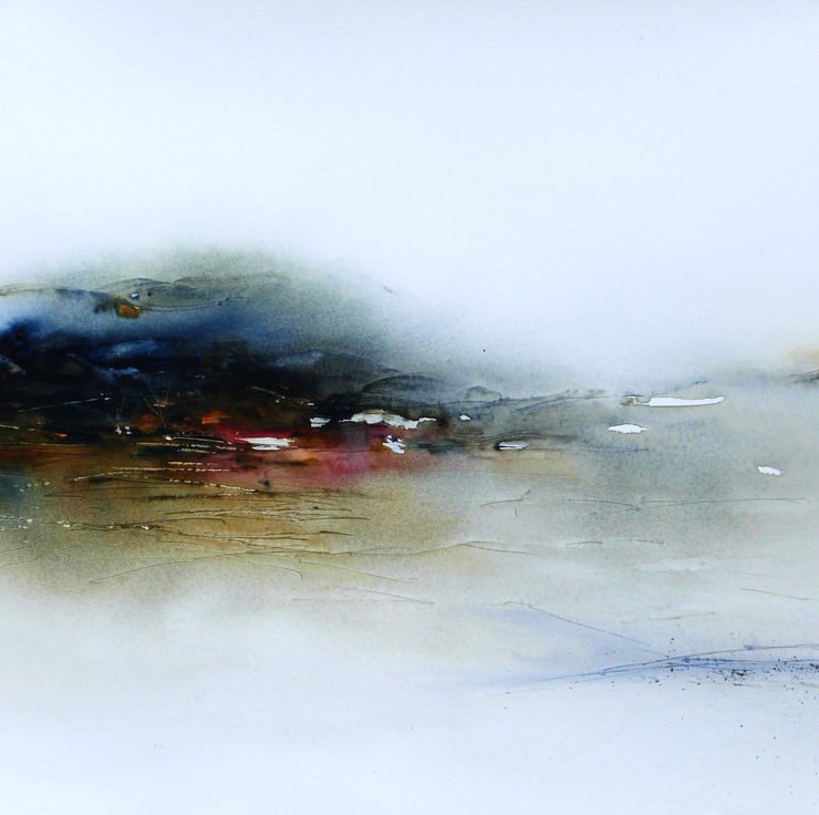 Working from my home studio on the beautiful Isle of Mull off the west coast of Scotland, my paintings are inspired by the wonderful Seascapes, Landscapes and Wildlife that surround me. This particular painting is an abstract Landscape work, distant mountains, an uncertain crossing.