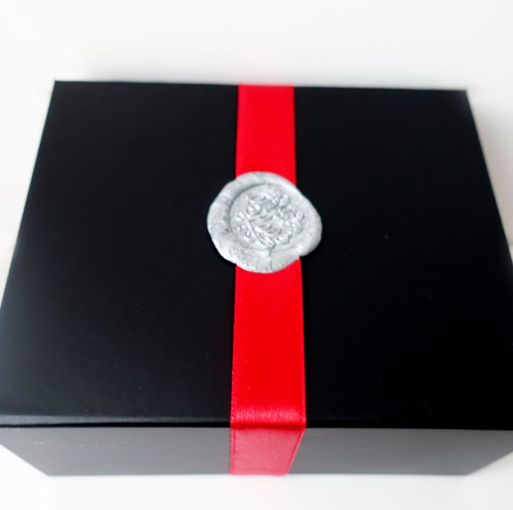 As an added option you can purchase a luxury magnetic gift box in strong black matt with a scarlet ribbon and silver sealing wax seal that is stamped With Love. This makes an ideal ready to go gift for you to send. I can send this direct for you within the UK if you desire.