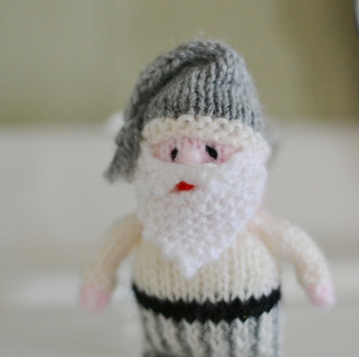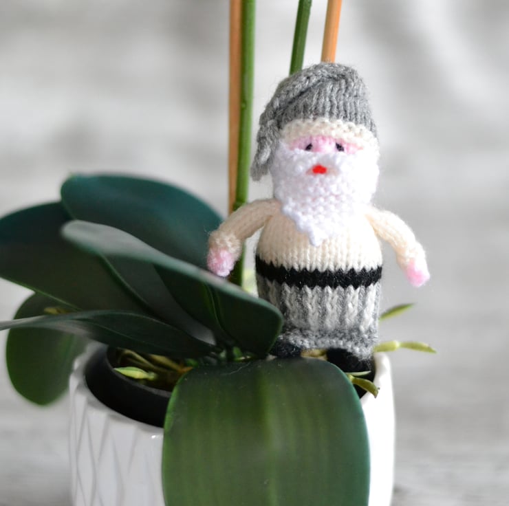 This pocket sized elf will look lovely on your potted plant or xmas tree. Measures approx 4.5". Hand knitted in 100% acrylic and stuffed with safety toy stuffing.