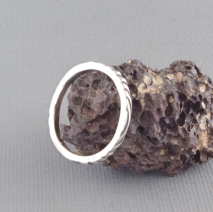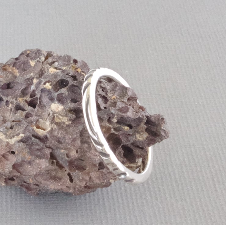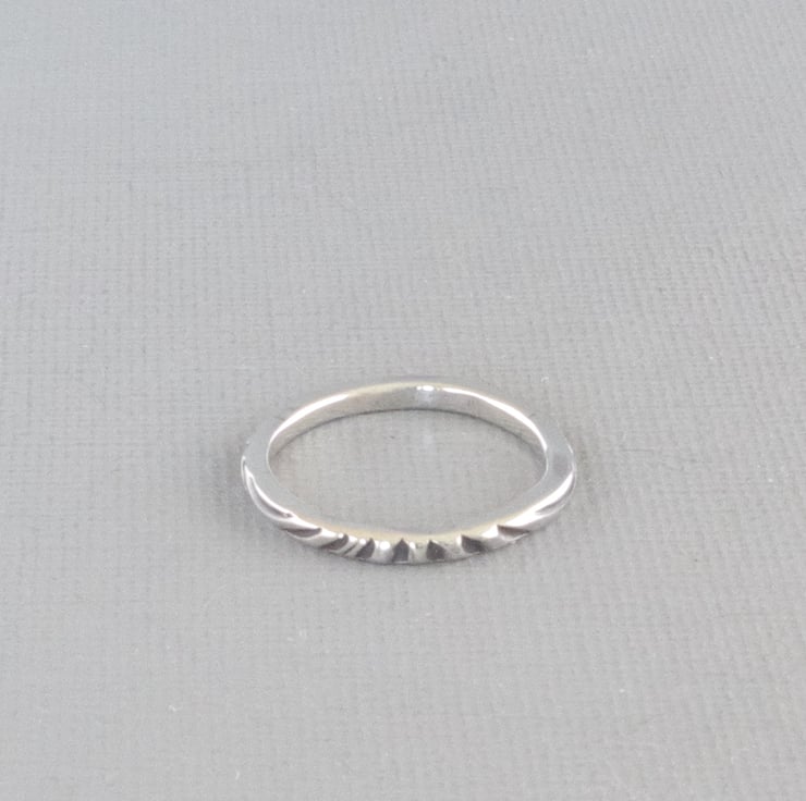 A 2mm square thick and sturdy sterling silver stacking ring with deeply carved stripes in an unusual zebra stripe pattern, oxidised to a matt black and highly polished shiny silver finish. Perfect for wearing with other stacking rings or to keep a larger ring from sliding off your finger. This stacking ring, depicted in size M, is hand crafted to order in my East Sussex studio and can be made in UK sizes G to Z. Just select from the drop-down menu. If you need a half size, please message me to let me know.