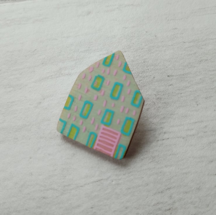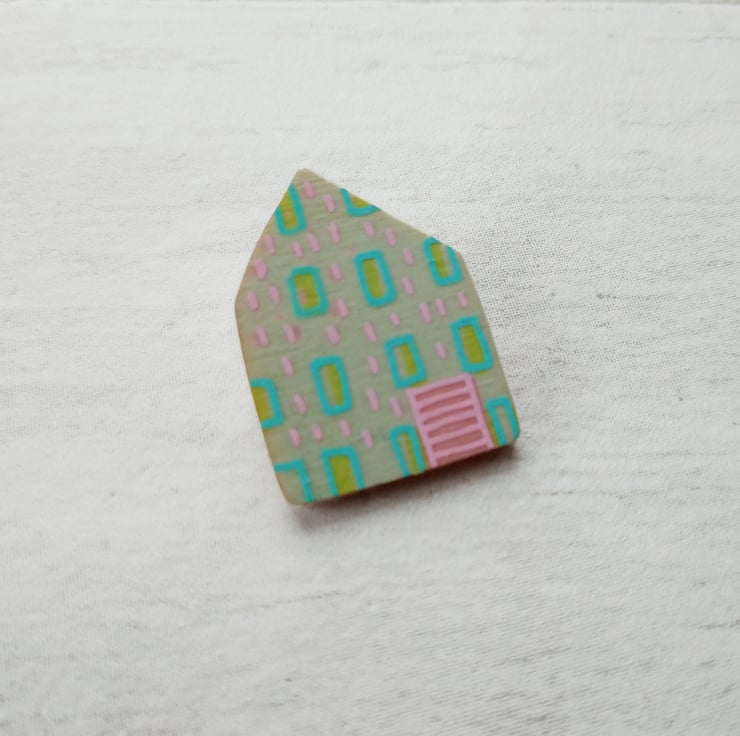 The brooch measures 3.5cm x 2.5cm with a metal lapel pin fastening on the back, perfect for wearing on jackets and jumpers. It would make a great gift for a lover of little houses and original design. The brooch comes attached to a pretty backing card ready to give as a gift or even keep as a present to yourself!