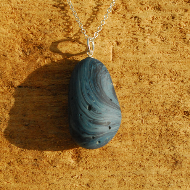 Our jewellery is individually hand made in Chudleigh, Devon. We collect our materials ourselves, mainly from local beaches. Each piece of glass is unique, so each piece of jewellery is unique. We only use materials which have rounded edges, which is why we tumble pieces which have rough edges in sand (this continues the process begun by the waves) until they are smooth.