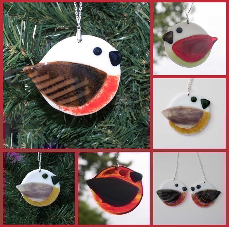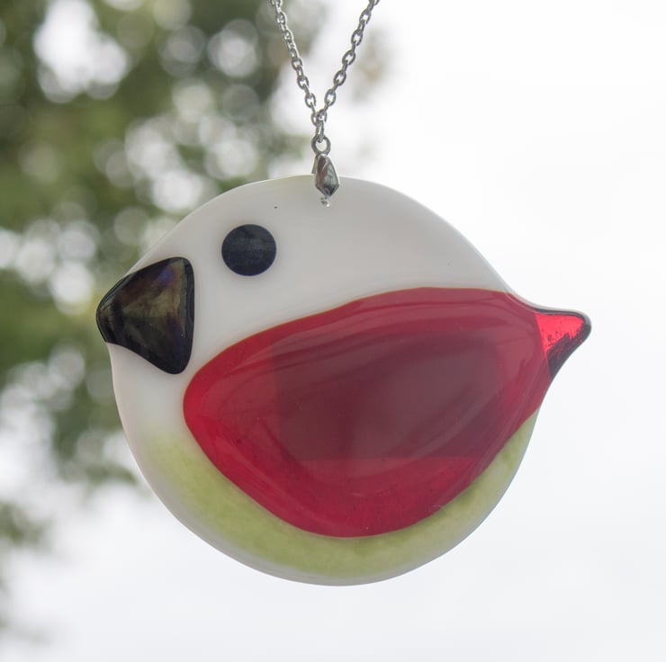 As we hand-cut all the glass used in our creations so you'll never get two the same. Please bear in mind that the glass we use has variations in colour so your robin may not be exactly the same as those shown. It will, however, have a white body, red wing and green chest.