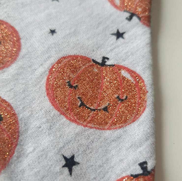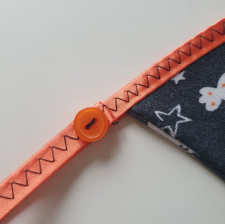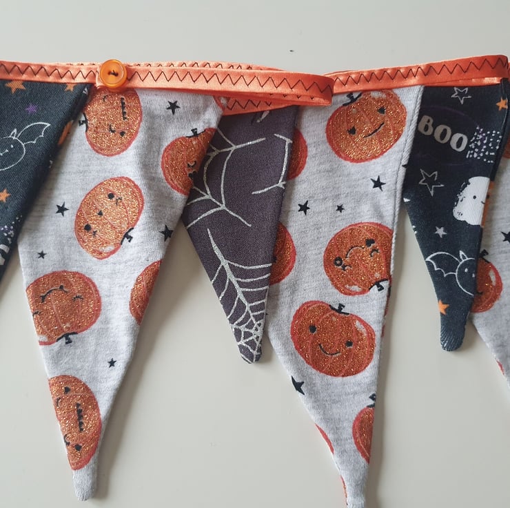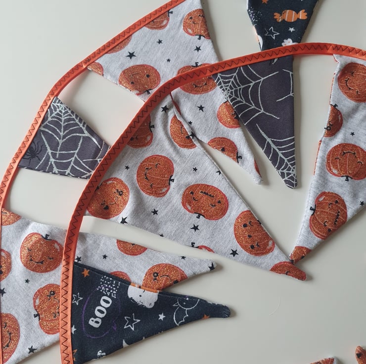 Sparkly Pumpkins and Cobwebs Bunting on Orange Satin Binding.