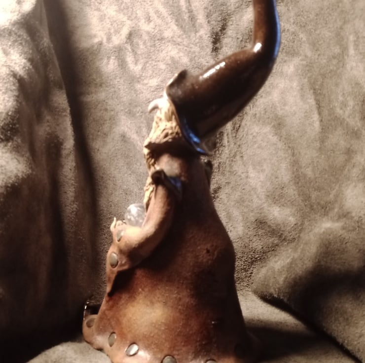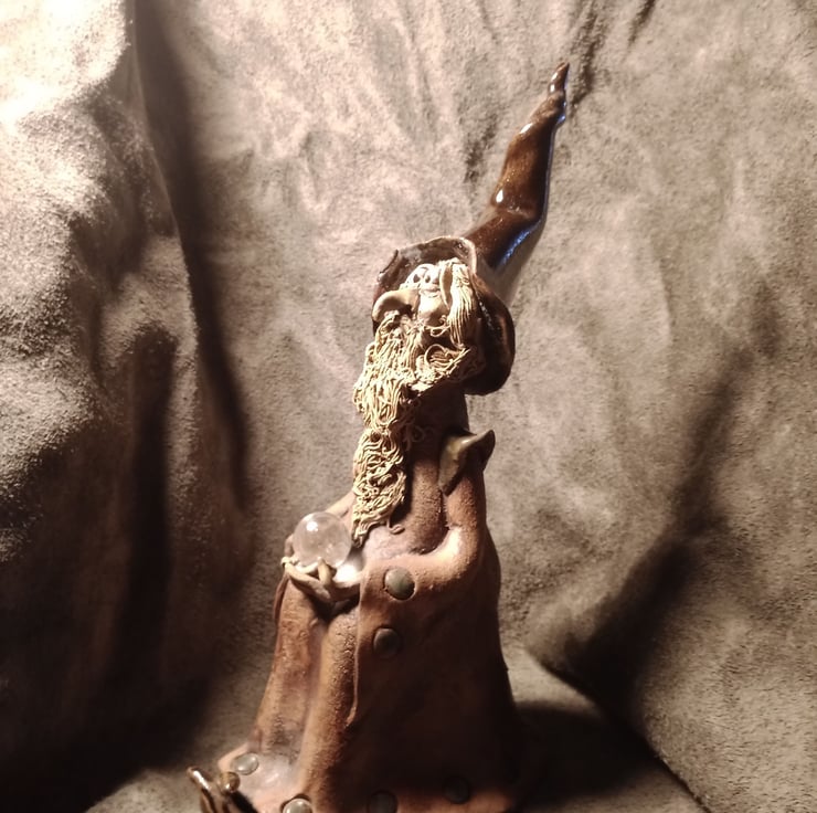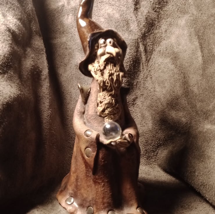A wise old wizard gazing into his crystal ball handmade from stoneware clay. Looks great under a lamp, on a shelf or bookcase or even outside in the garden. The perfect gift for lovers of magic and witchcraft and a great addition to a Halloween display.