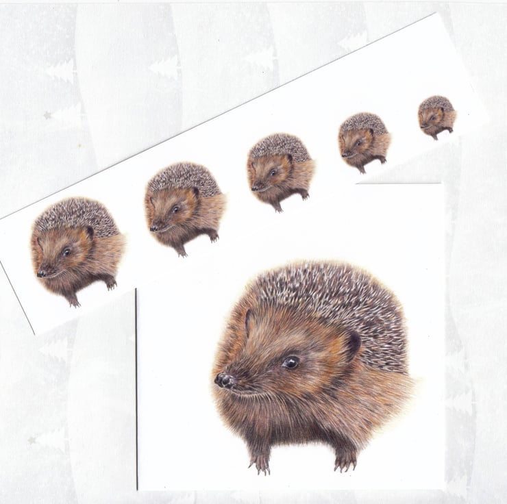 Hegehogs are one of our most loved creatures. I have printed this card from one of my one of my own coloured pencil drawings. A wildlife card of a beautiful, native british animal. I also include a free bookmark for your own use.