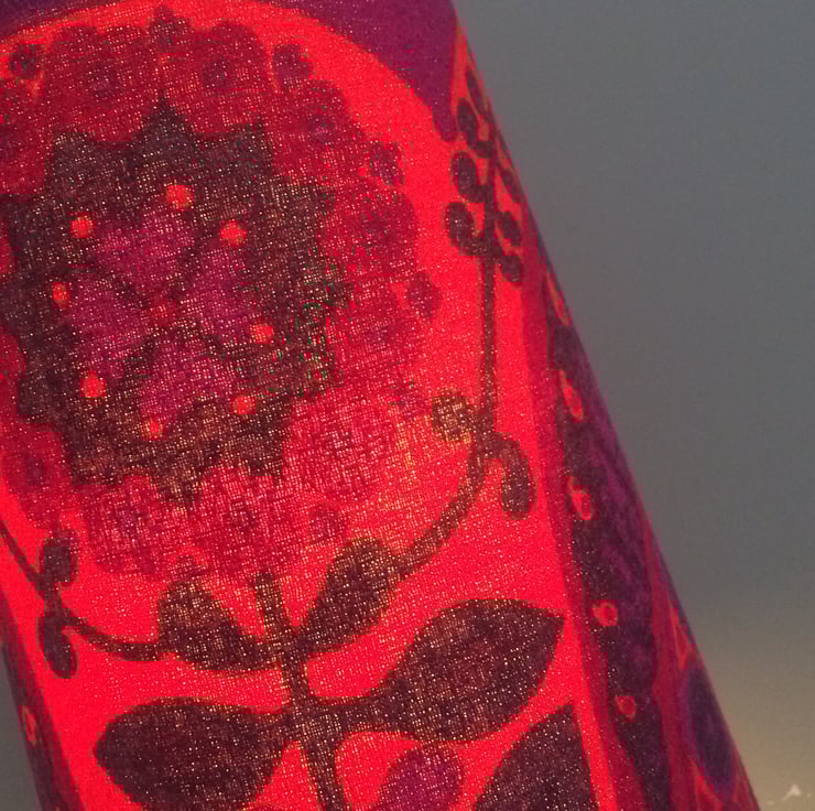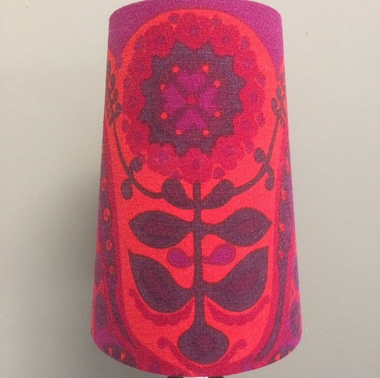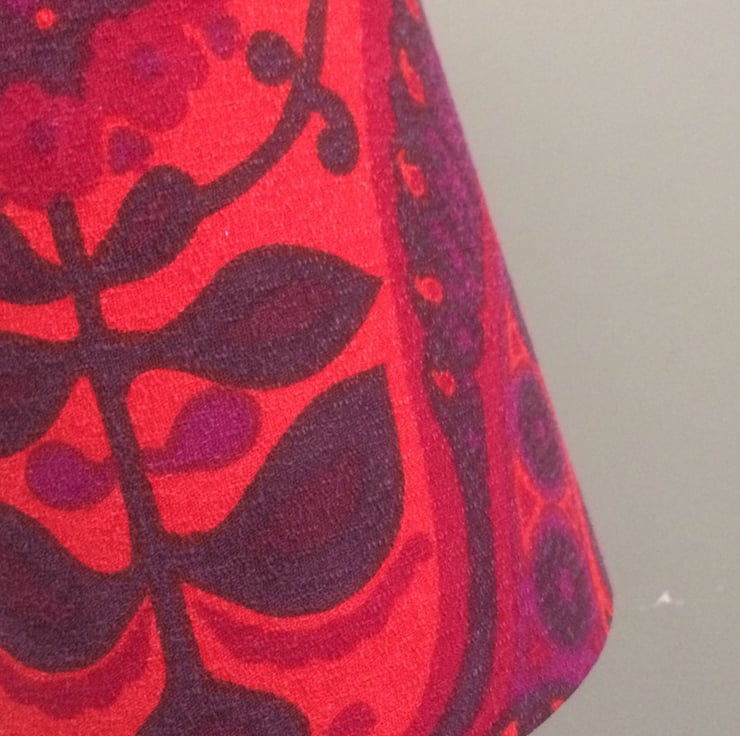 Red Pink Purple 60s Vintage Barkcloth Fabric Pageant by Jyoti Bhomik Lampshade option. Super feature fabric for a lampshade in a modern or retro home. A very sought after fabric from HEALS.