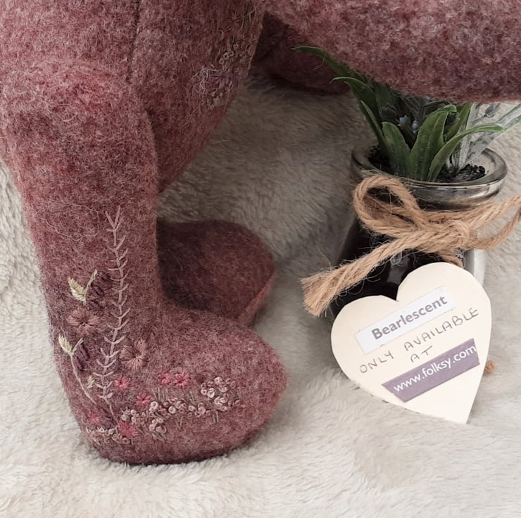 Hand embroidered, one of a kind collectable bear, unique teddy bear in hand dyed alpaca fabric, designed and created by Bearlescent