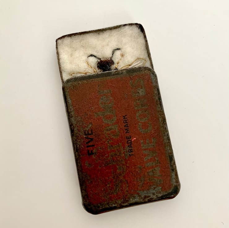 It’s built into this love, very old, tyre valve tin.