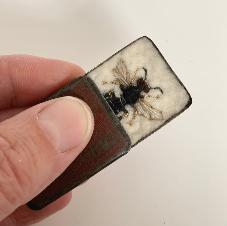 I particularly like the way these bee slides out from under the tin lid, and how it sits in the hand.