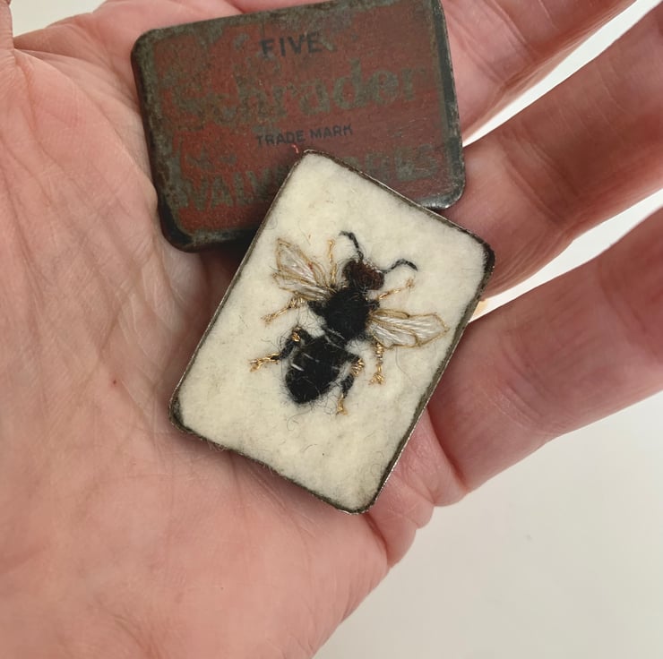 I particularly like the way these bee slides out from under the tin lid, and how it sits in the hand.