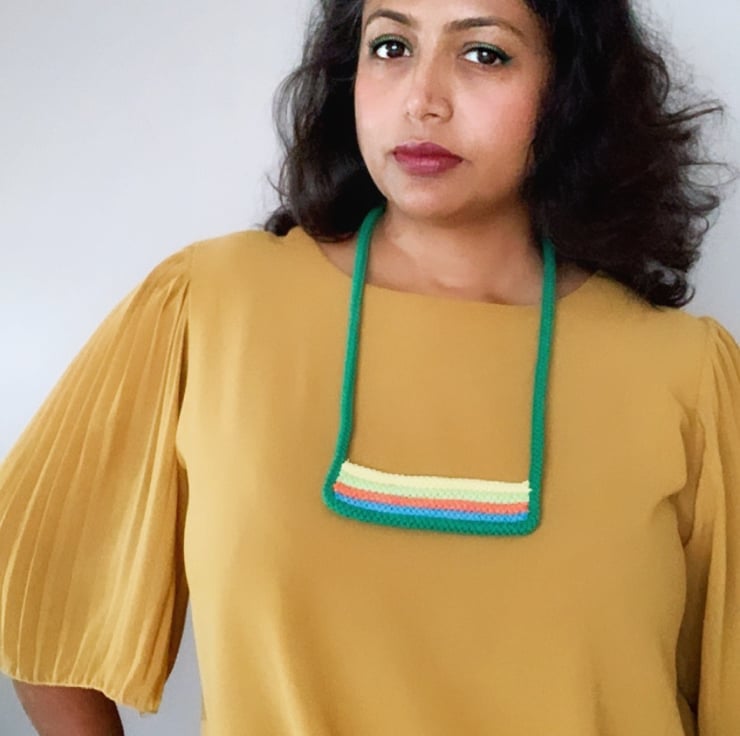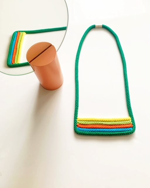 Look sharp in the Bridget Necklace. We delved into Bridget's paintings to realise stripes and colour pop.
