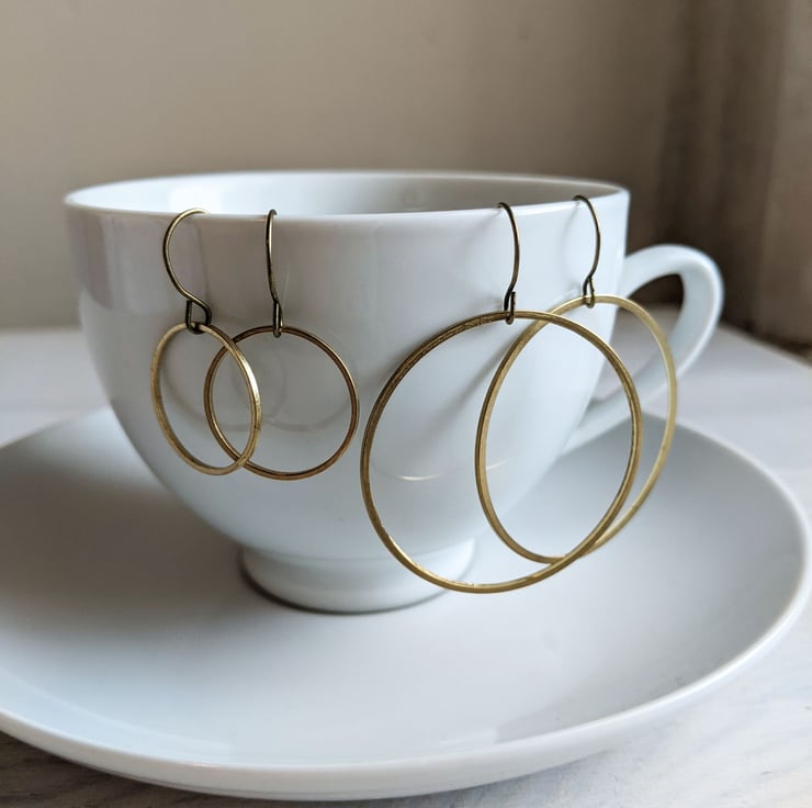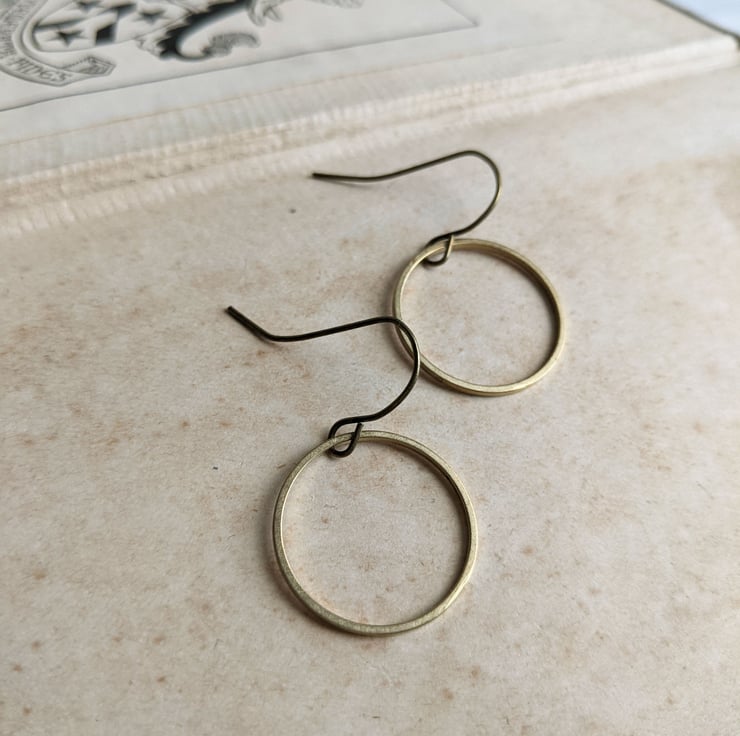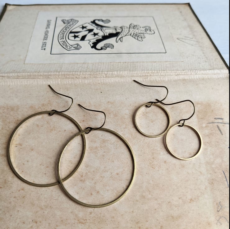 Each earring measures 3/4" wide. Hooks are bronze plated. Nickel free.