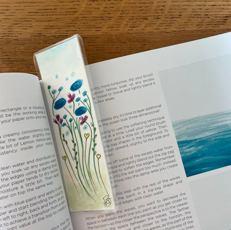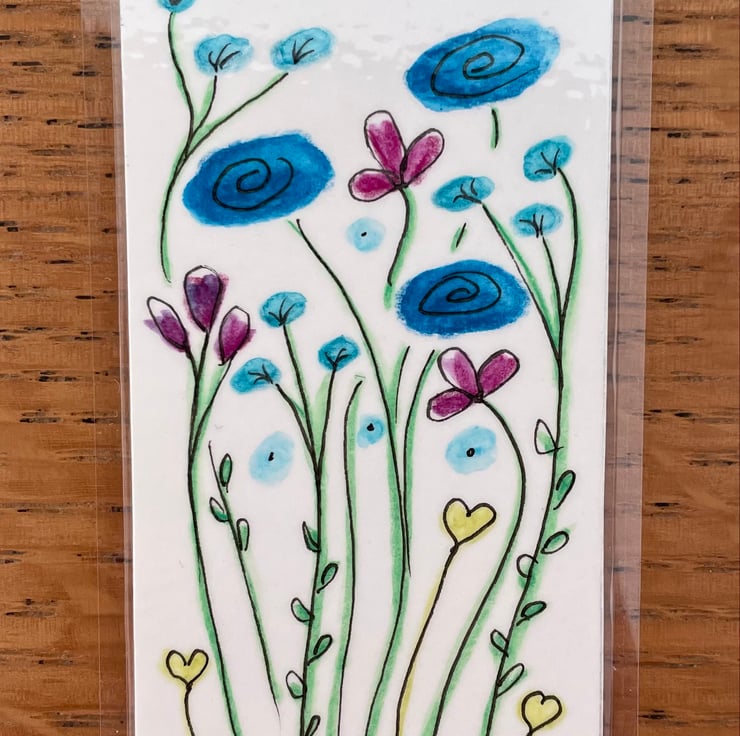 Little flowery bookmark, hand painted with watercolour and ink onto 300gsm watercolour paper signed by myself the artist, before being laminated for protection.
