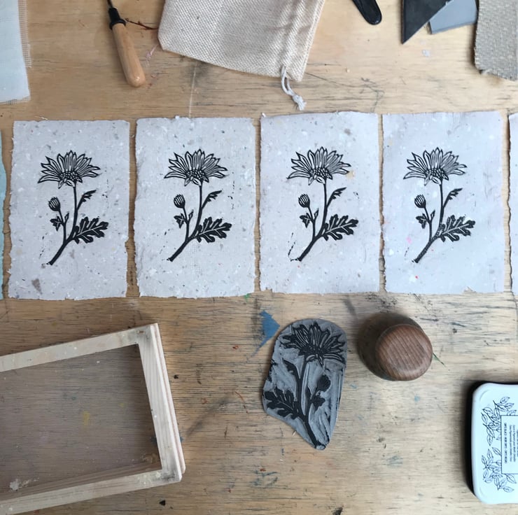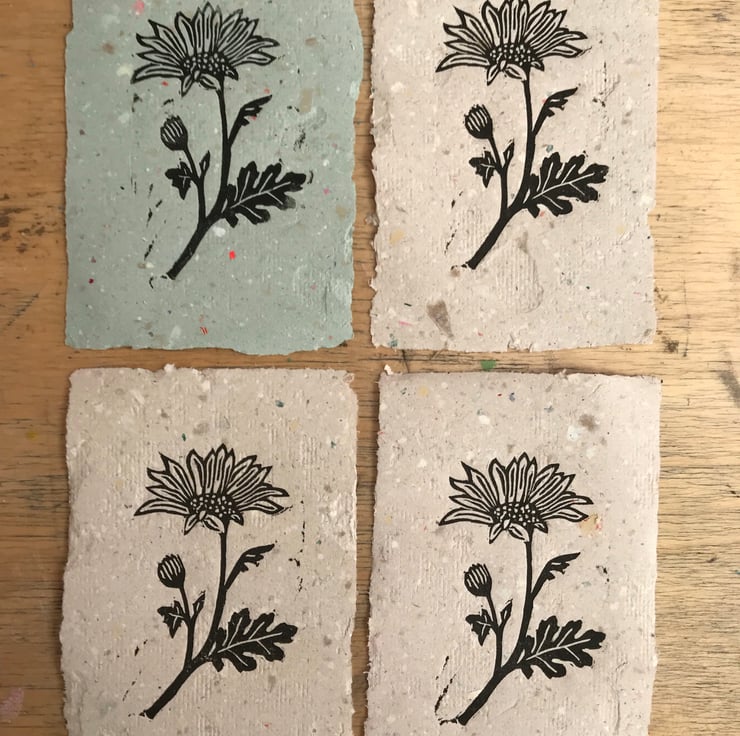 Daisies are my favourite flower! They are simple on their own but joyful in abundance. This ode to the daisy is printed on the first batch of handmade paper made in my own studio!
