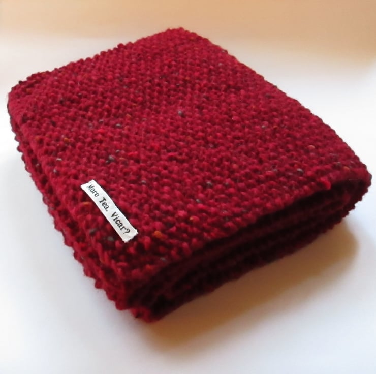 Lovely and warm this rich Red Donegal Irish Aran Tweed Pure Wool Scarf is 138cm long and 23cm wide (56 inches by 9 inches). The wool has tweed flecks incorporated in the wool.