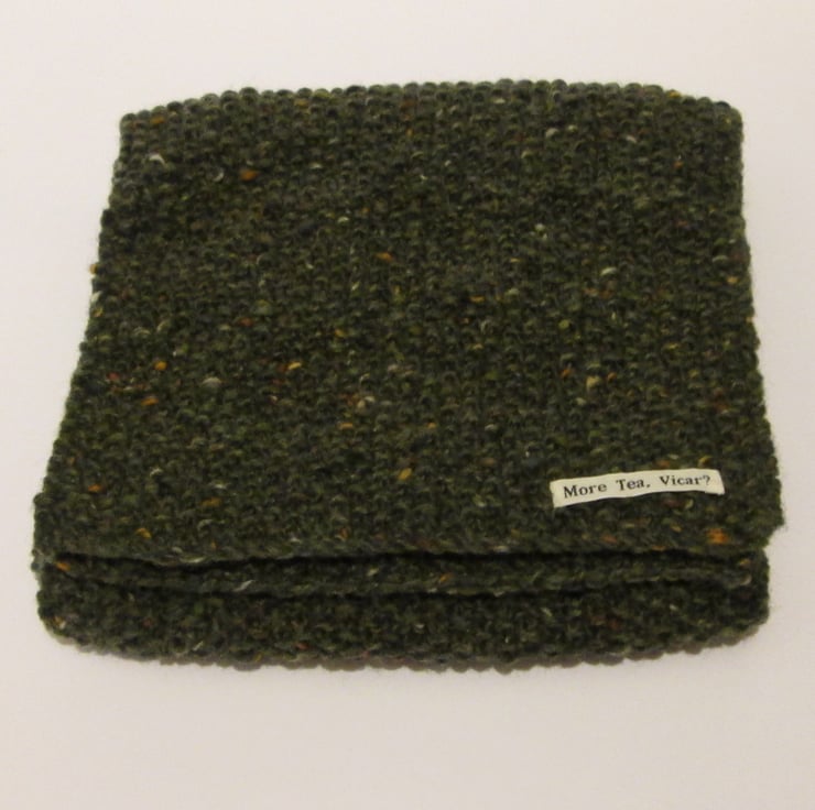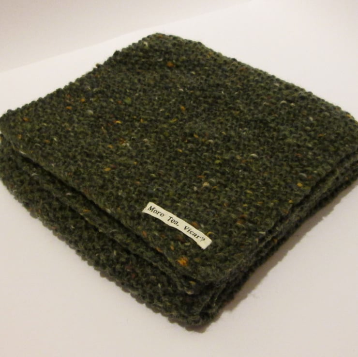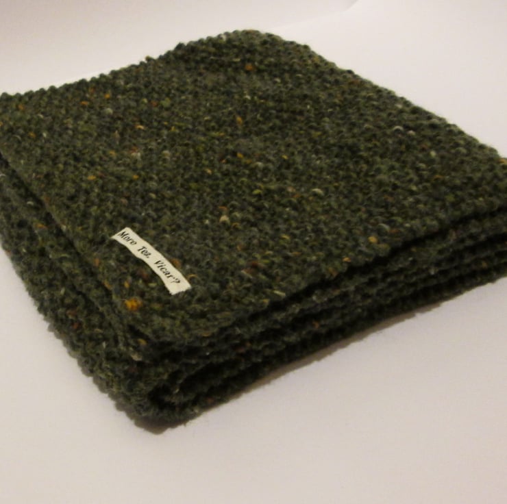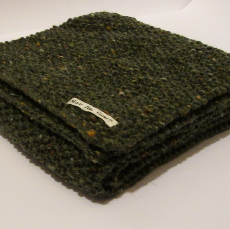 Lovely and warm this Forest Green colour Donegal Irish Aran Tweed Pure Wool Scarf is 138cm long and 23cm wide (56 inches by 9 inches). The wool has tweed flecks incorporated in the wool.