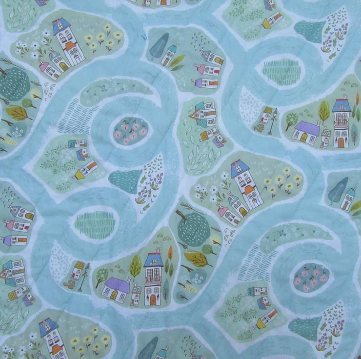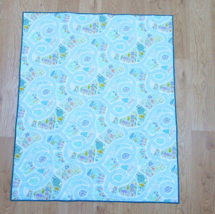 On the reverse side of the quilt is a soft cotton printed with a street map.