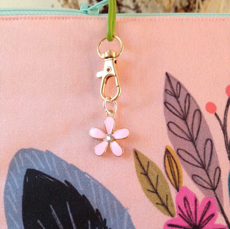 There is a little clip on the zip for your stitch markers and you will receive the pretty flower stitch marker that is shown with the bag.