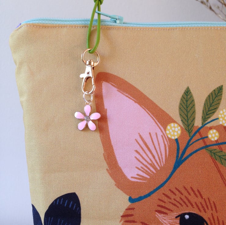 There is a little clip on the zip for your stitch markers and you will receive the pretty flower stitch marker that is shown with the bag.