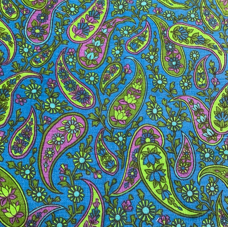 Fun Paisley Blue Purple Lime 60s 70s Barkcloth Vintage Fabric for sale