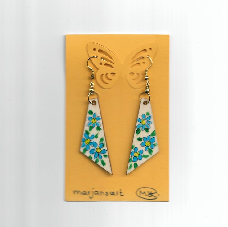 Wooden hand painted dangle earrings