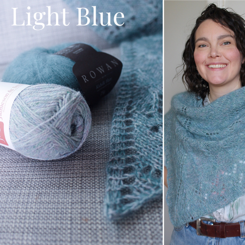 2 x 25g of Rowan's Kidsilk Haze (210m per 25g; 70% mohair, 30% silk)
