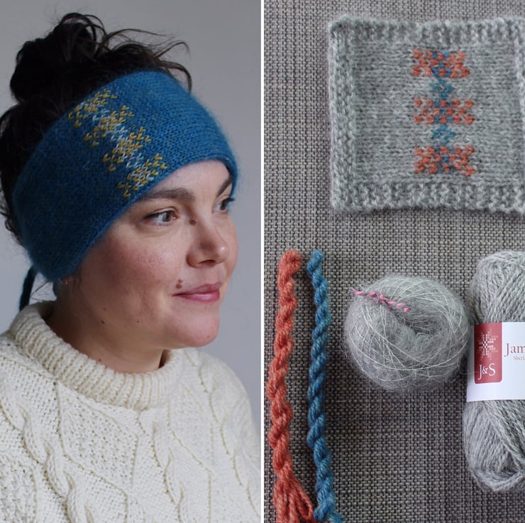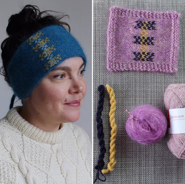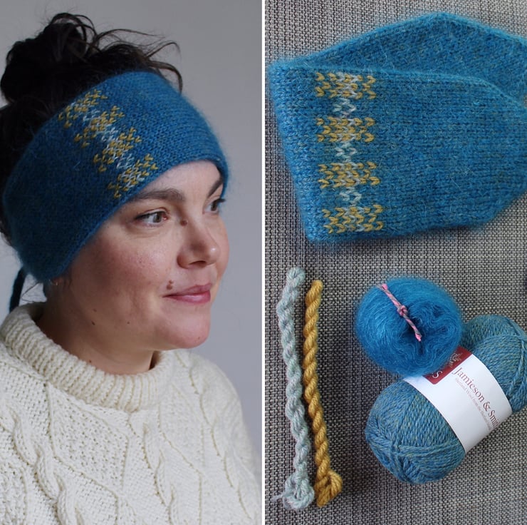 Used in the latter way, it’s the perfect name for a knitted headband decorated with duplicate stitch (or Swiss darning); a technique commonly used for patching or mending fabric, and as a knitter, a very handy skill to have in your knitterly armoury!