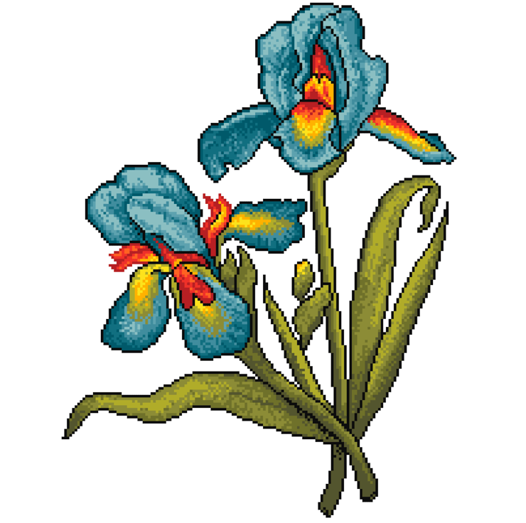 007 Cross Stitch Pattern Botanical Rainbow Blue Iris's - Vintage Victorian
