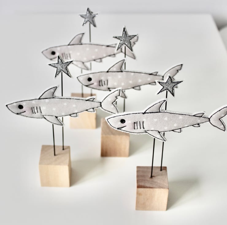 Due to the nature of each shark and star being handmade, there will be slight differences in each, making each one unique. They will also differ slightly from the photographed one.