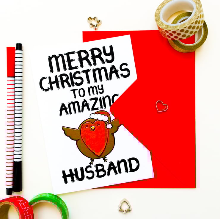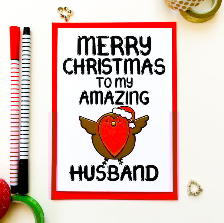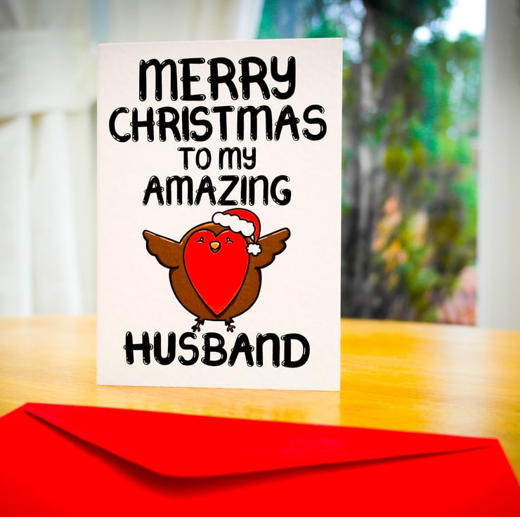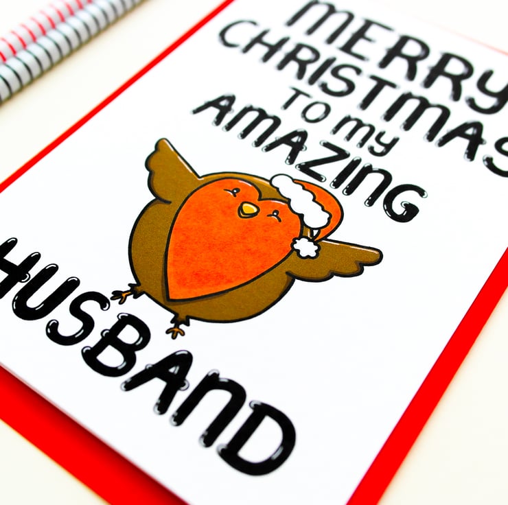 Greeting on front: MERRY CHRISTMAS TO MY AMAZING HUSBAND
