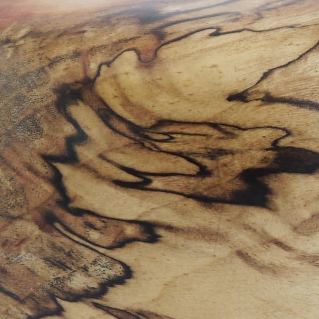 Working with spalted wood is a challenge because the wood can be very soft and the grain patterns disturbed. Woodturners call it "punky". It requires sharp tools and careful finishing. This willow tree fell over in strong wind in a park very close to my home. This bit of wood I left on the ground for 6 months to maximise the fungal infection. I then turned it to an initial shape, and boiled it in water. This has a similar effect to steaming and removes stresses form the wood. It also kills any fungal spores that may still be present. Then it was very carefully dried it out in a microwave, which has a similar effect and leaves the wood dry for turning to its final shape.