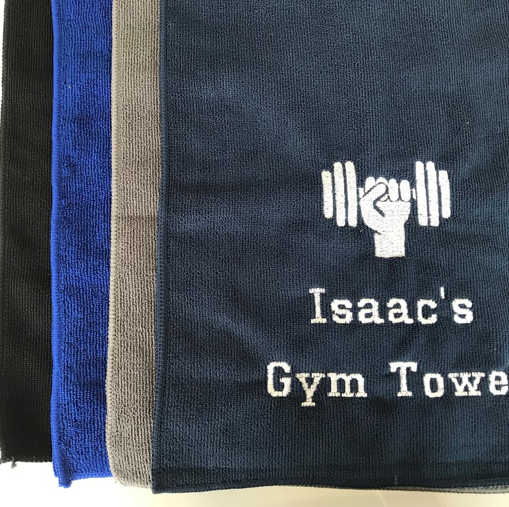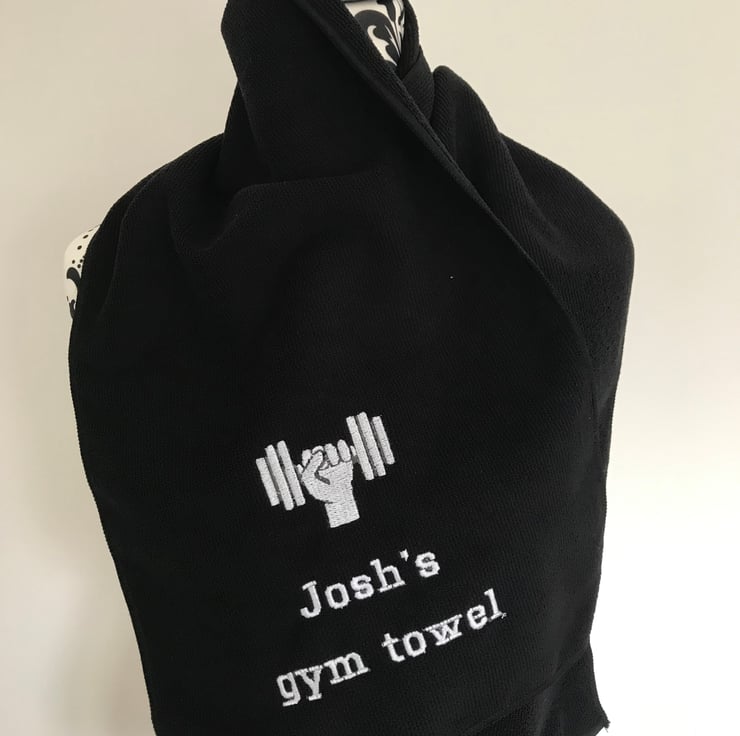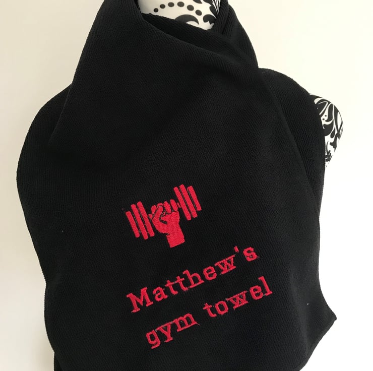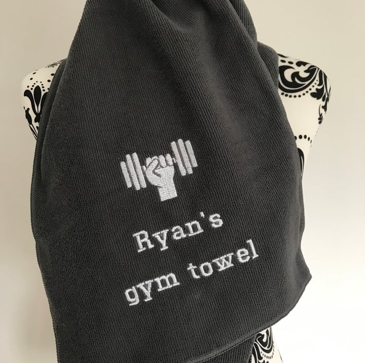 CHOOSE YOUR SIZE AND COLOUR TOWEL IT WILL BE EMBROIDERED WITH A DUMBBELL AND TEXT OF YOUR CHOICE.