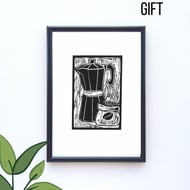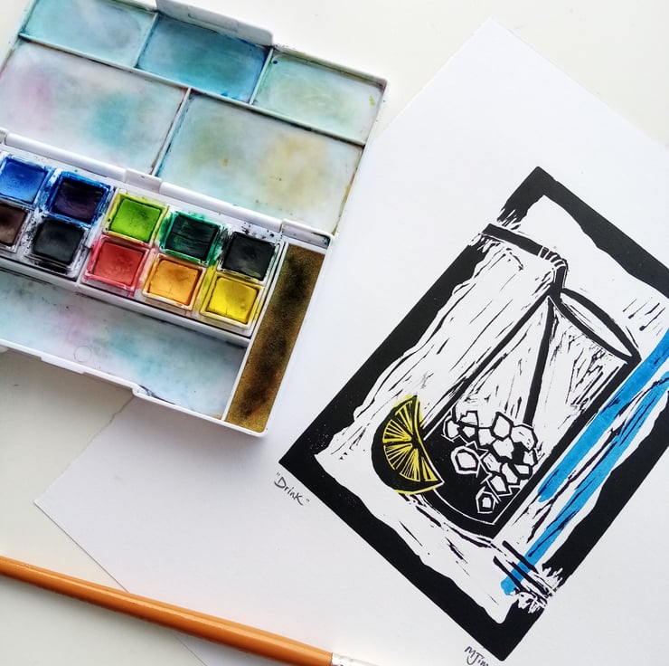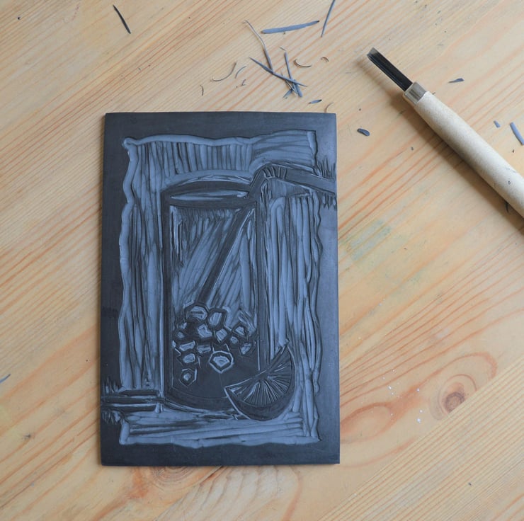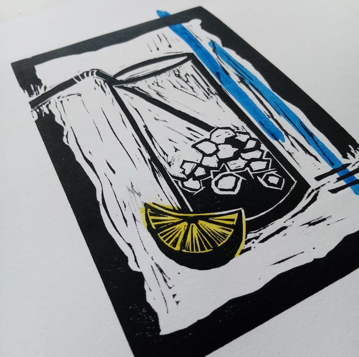 Handprinted Linoprint Cocktail Drink Linocut Wall Art Handmade Print Unframed