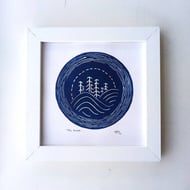 This linoprint is part of an open edition. It fits standard 8" x 10" frames (widely available).