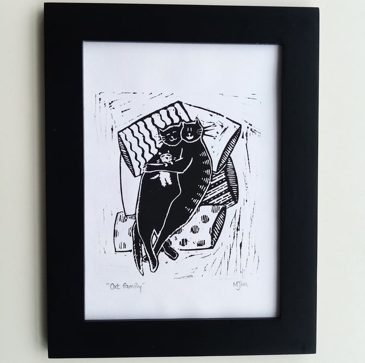 Handprinted Linoprint Cat Lovers Unframed Linocut Animals Wall Art Print