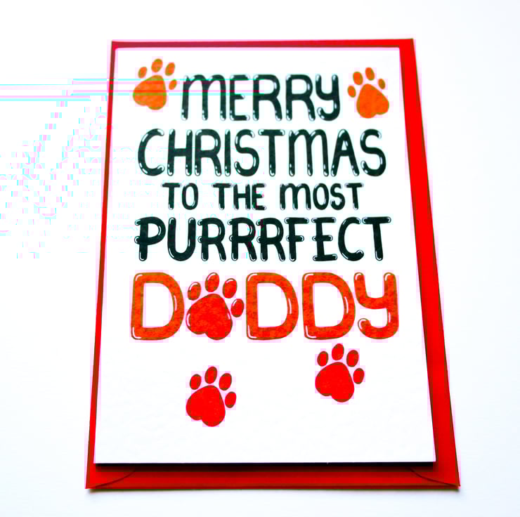 Greeting on front: MERRY CHRISTMAS TO THE MOST PURRRFECT DADDY