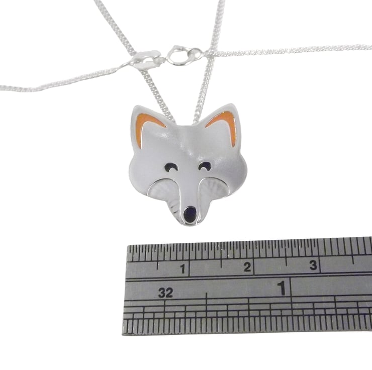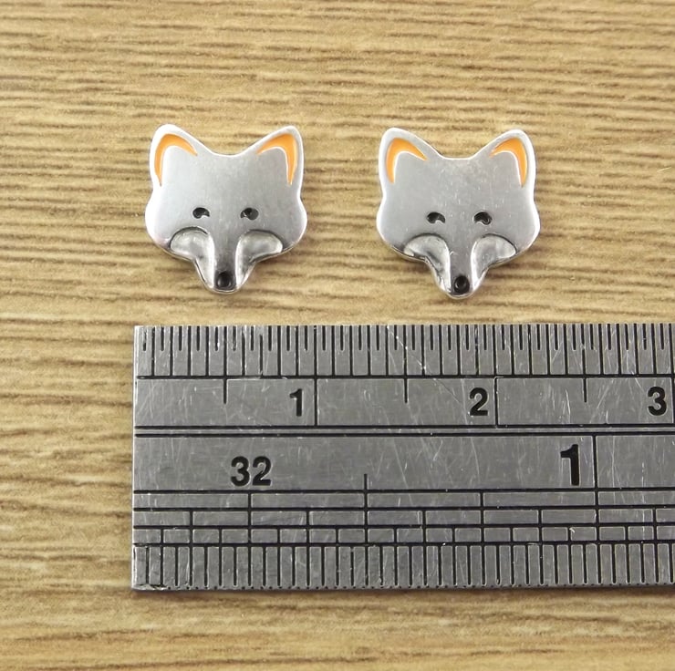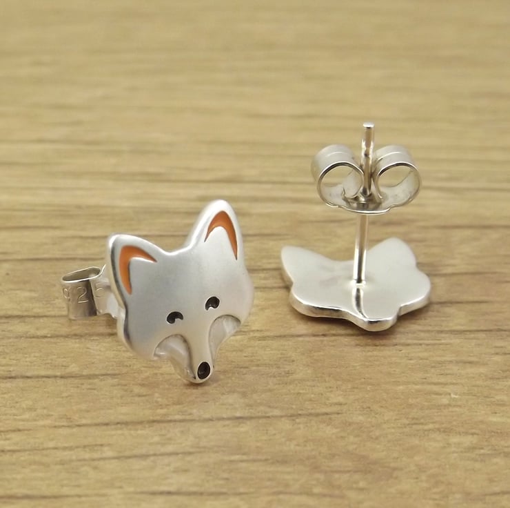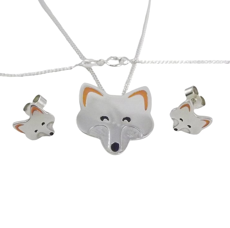 This fox jewellery set includes a pendant and a pair of stud earrings which have been lovingly crafted by hand. They are made from recycled sterling silver and are etched before being cut out using a piercing saw, the edges are then smoothed using files and emery paper before they're carefully given their shape using a punch and hammer. Black and orange resin based enamels are added to the etched areas before they are polished. They come in a box made from 80% recycled cardboard.