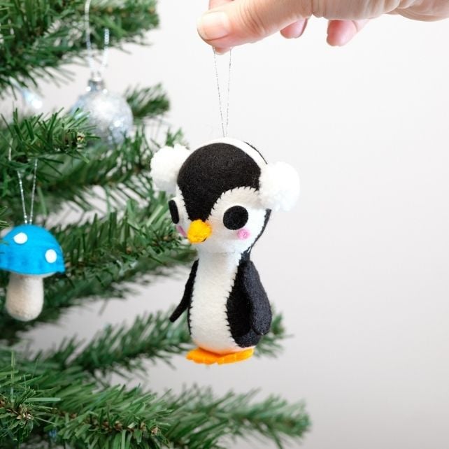 This adorable Penguin is perfect dangling from your tree, a hook or wherever you’d like to see it’s sweet smile. It's ear muffs must be keeping it cosy and warm because it has rosy cheeks.