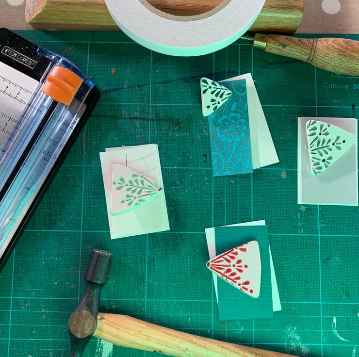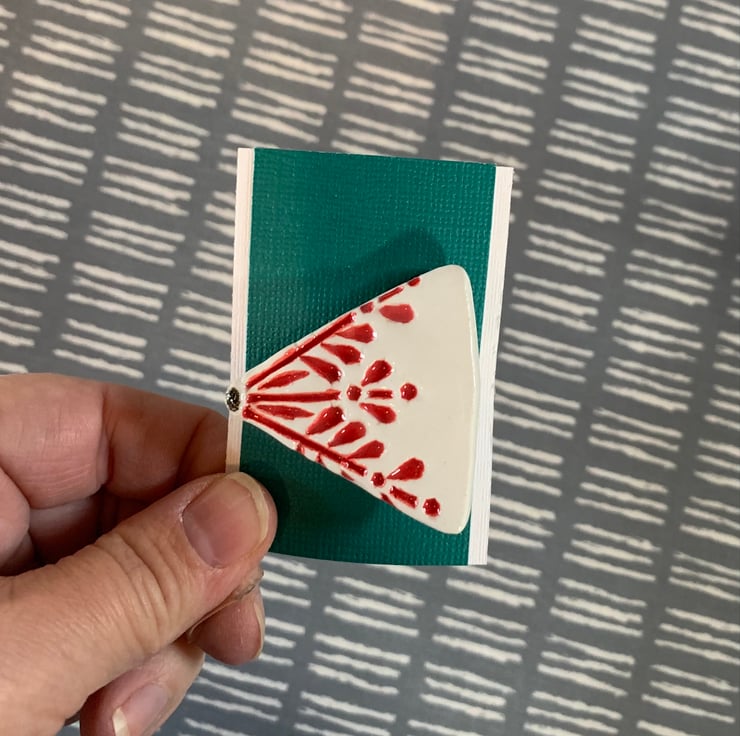 Next to the fun bit, applying colour! I hand paint each brooch using subtle coloured underglazes. Before dipping in a glossy transparent glaze and firing for the final time. A brooch pin is then attached to each piece and ta-da it’s ready to wear!