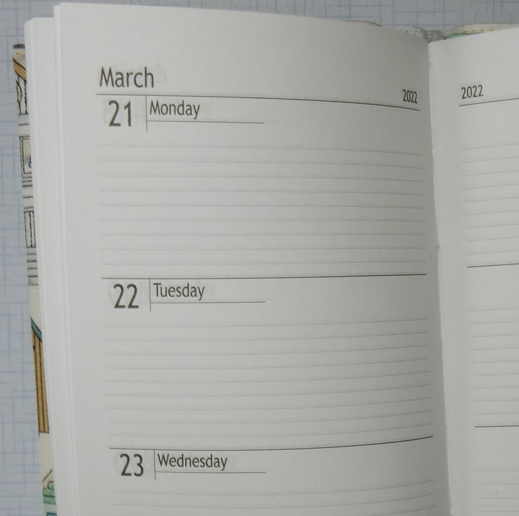 This fabric covered diary for 2022 features traditional beach huts, sea gulls and deck chairs. It is slimline (approx. 6.5 x 3.5 inches) and week to view style. The cover is removable and refills are easily available, for the following year. The cover is lined and interfaced and it would make a great gift.