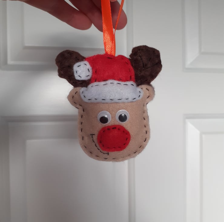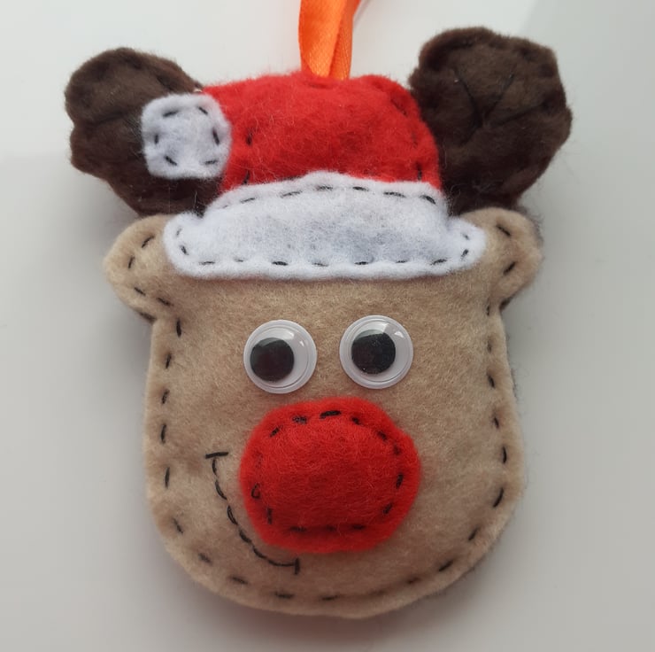 This is a sweet little gift tag made from felt. Rudolph has googly eyes and he has a little pouch at the back for your message!