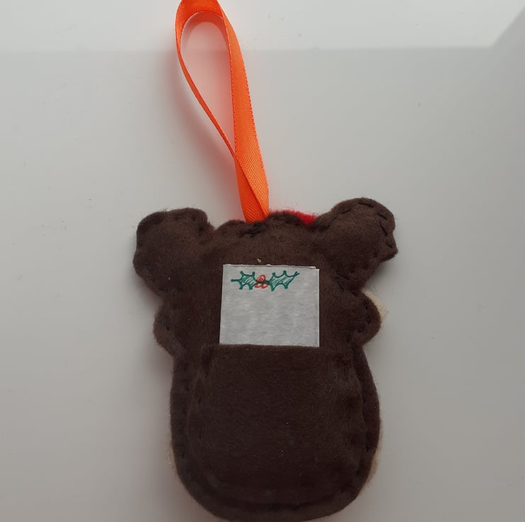 Rudolph is as I said made of felt and has been hand designed, cut and sewn. His nose, antlers and face have all been slightly plumped using off cuts of felt. There is a piece of card in the pouch at the back for you message.