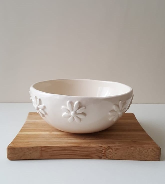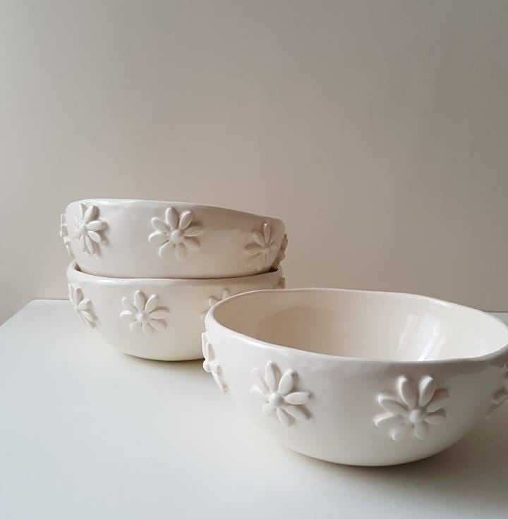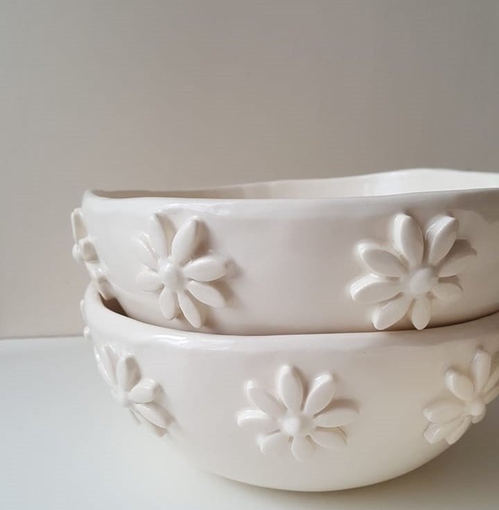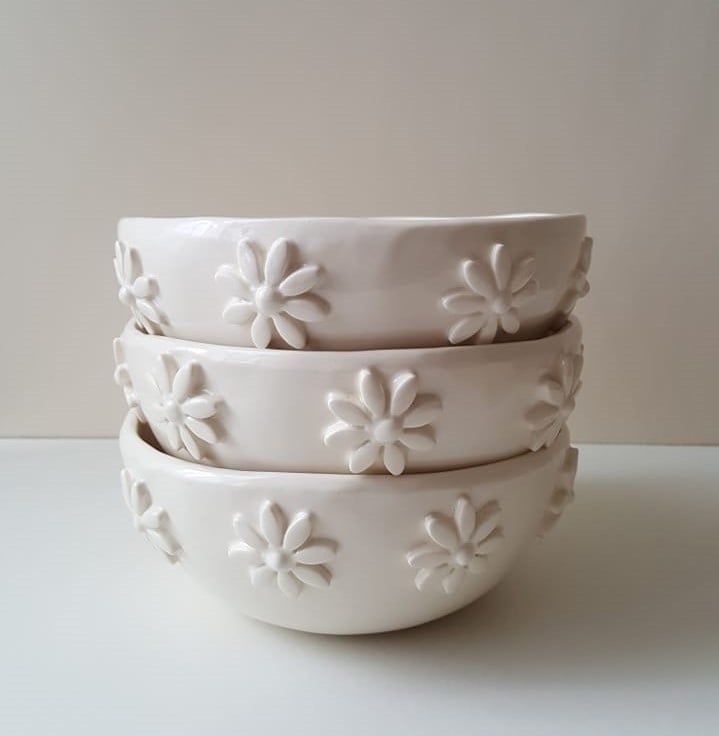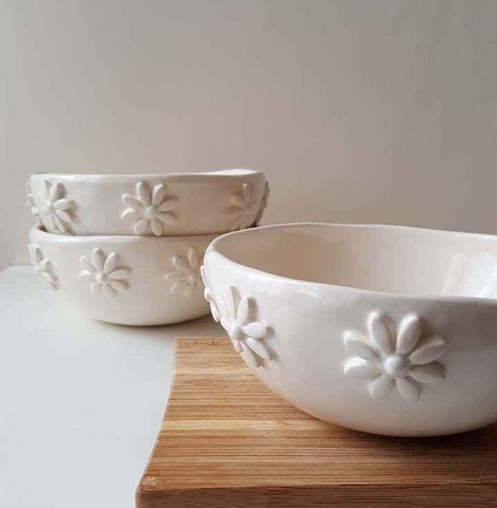I have handbuilt these gorgeous bowls and decorated them with cute daisies.
